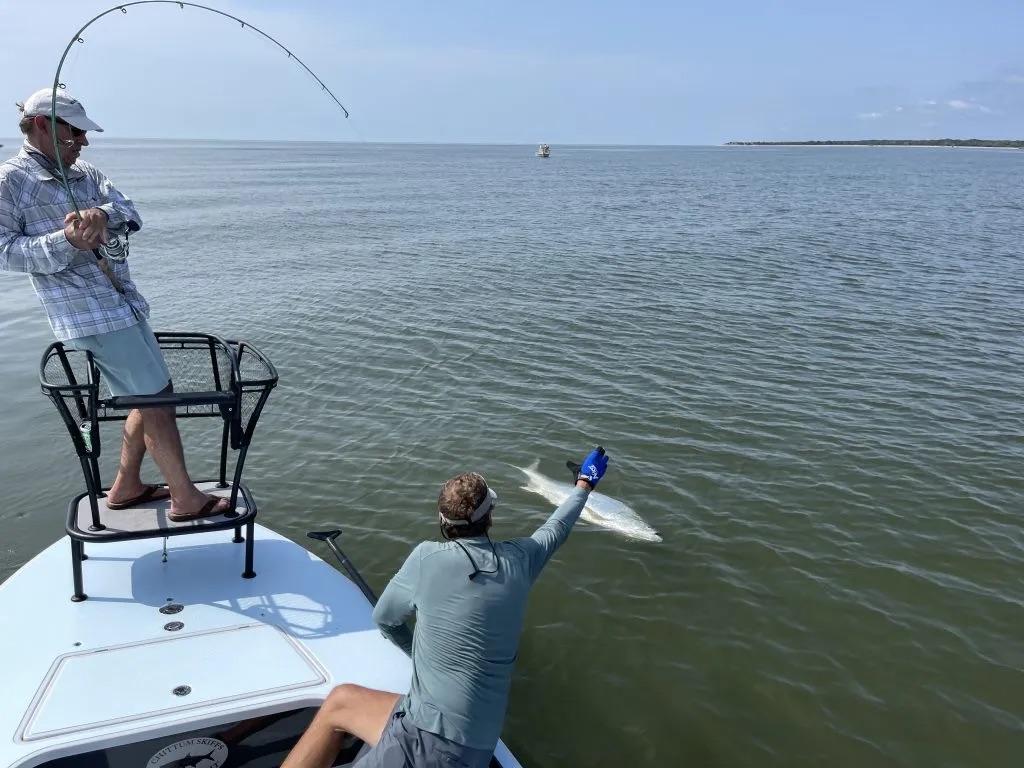 This is not light-tackle tarpon fishing for juveniles. Instead, late summer brings massive migratory tarpon cruising just off Georgia’s beaches. As a result, anglers have the opportunity to cast directly to rolling pods of fish in open water. Multiple hook-ups per day are common, with average tarpon weighing 60 pounds or more. Moreover, it’s not unusual for fish to push well past the 100-pound mark. If you’ve never come tight on a true giant tarpon, be prepared—because the fight is nothing short of unforgettable.