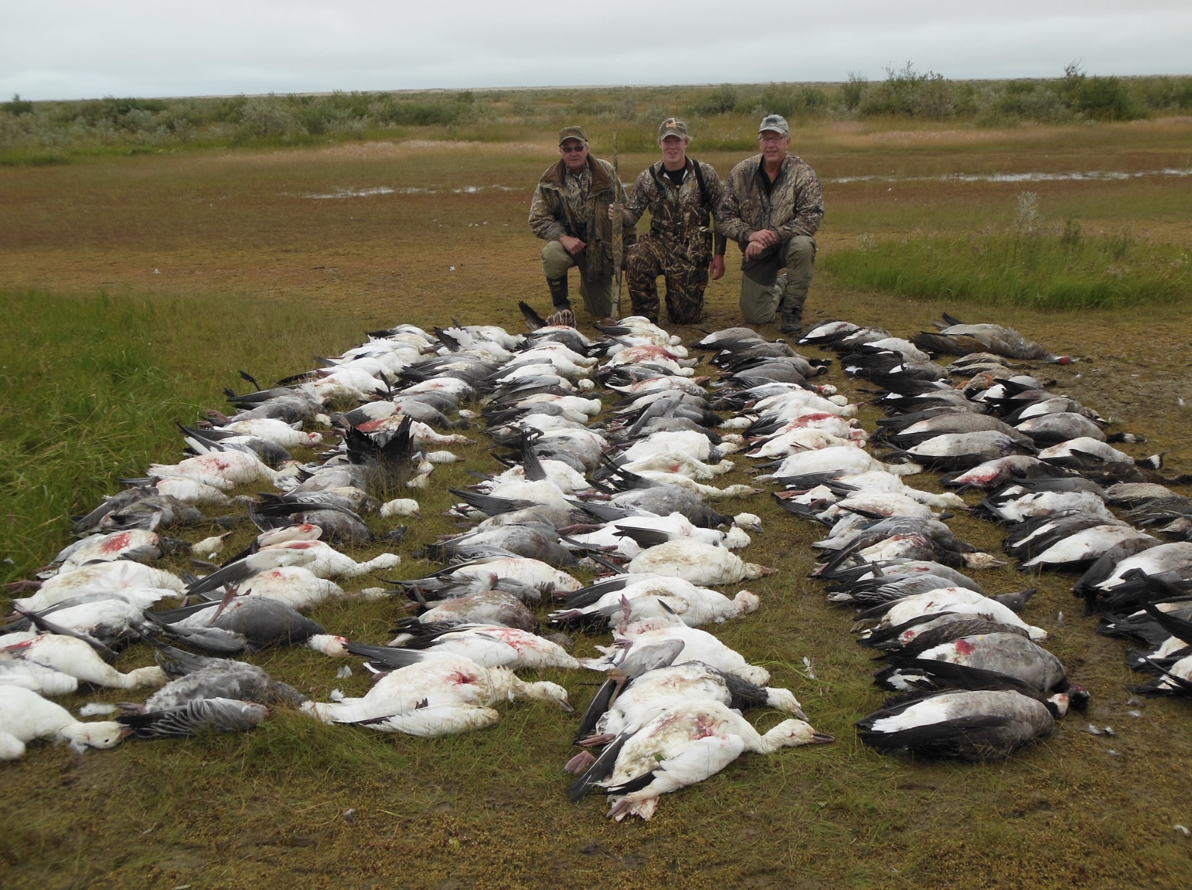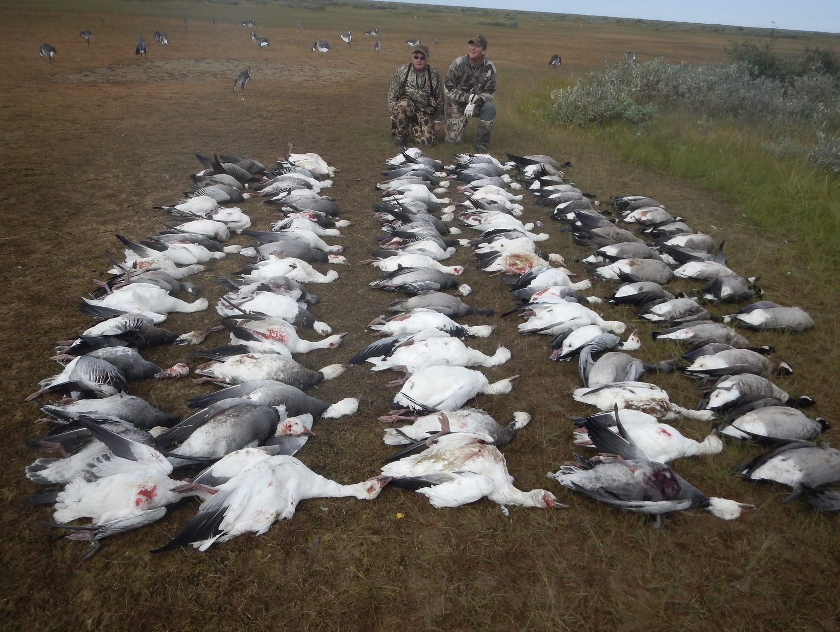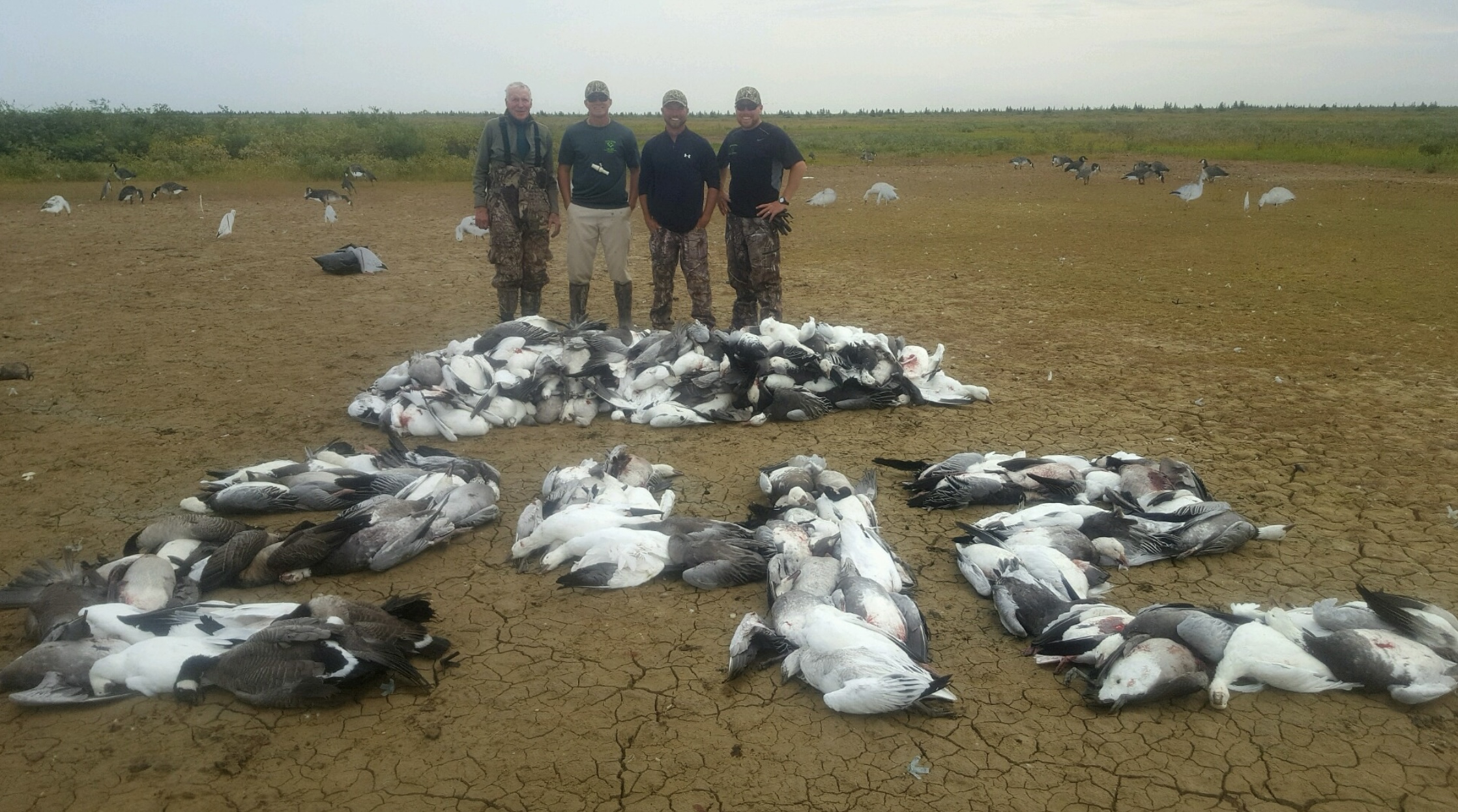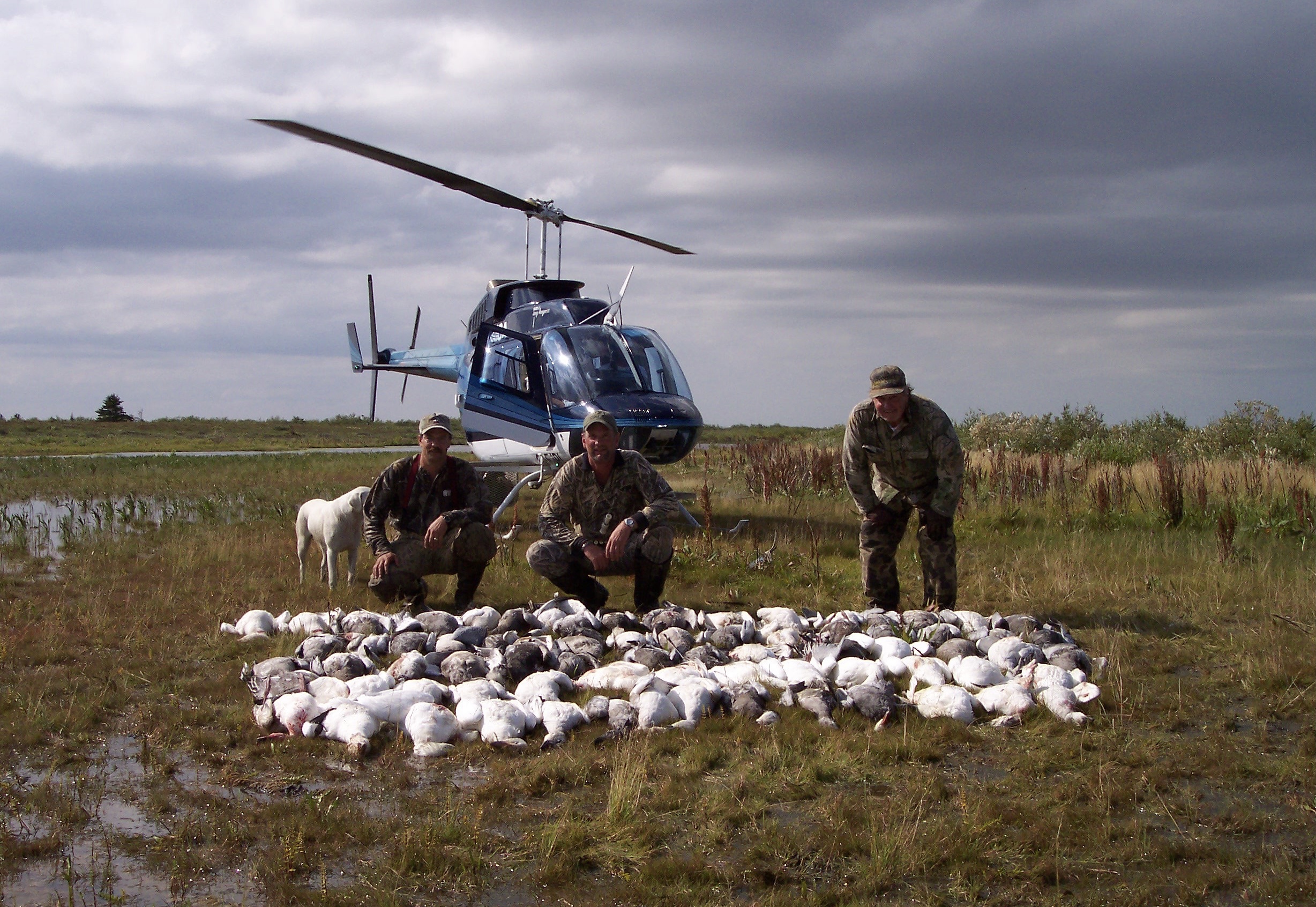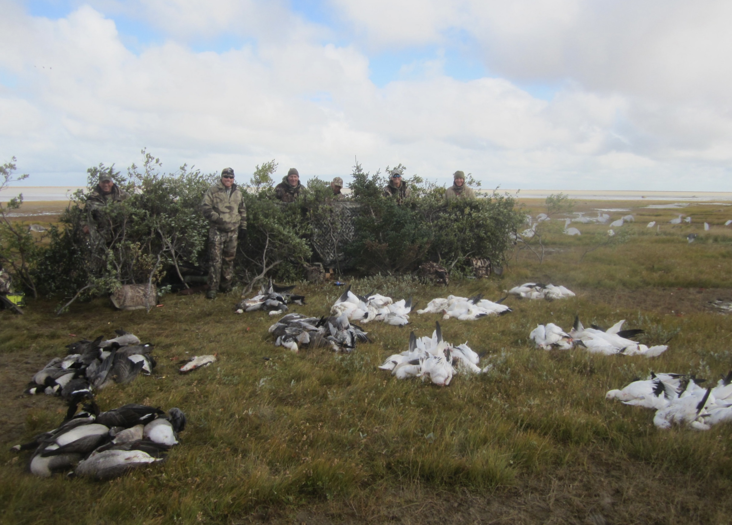 Hunts utilize the outfitter’s helicopter to place groups directly into the heart of migrating waterfowl. Hunters shoot from brush blinds, taking volleys of ducks, snow geese, and Canadian geese until limits are reached. Expect to share this wilderness with moose, caribou, polar bears, black bears, and wolves.