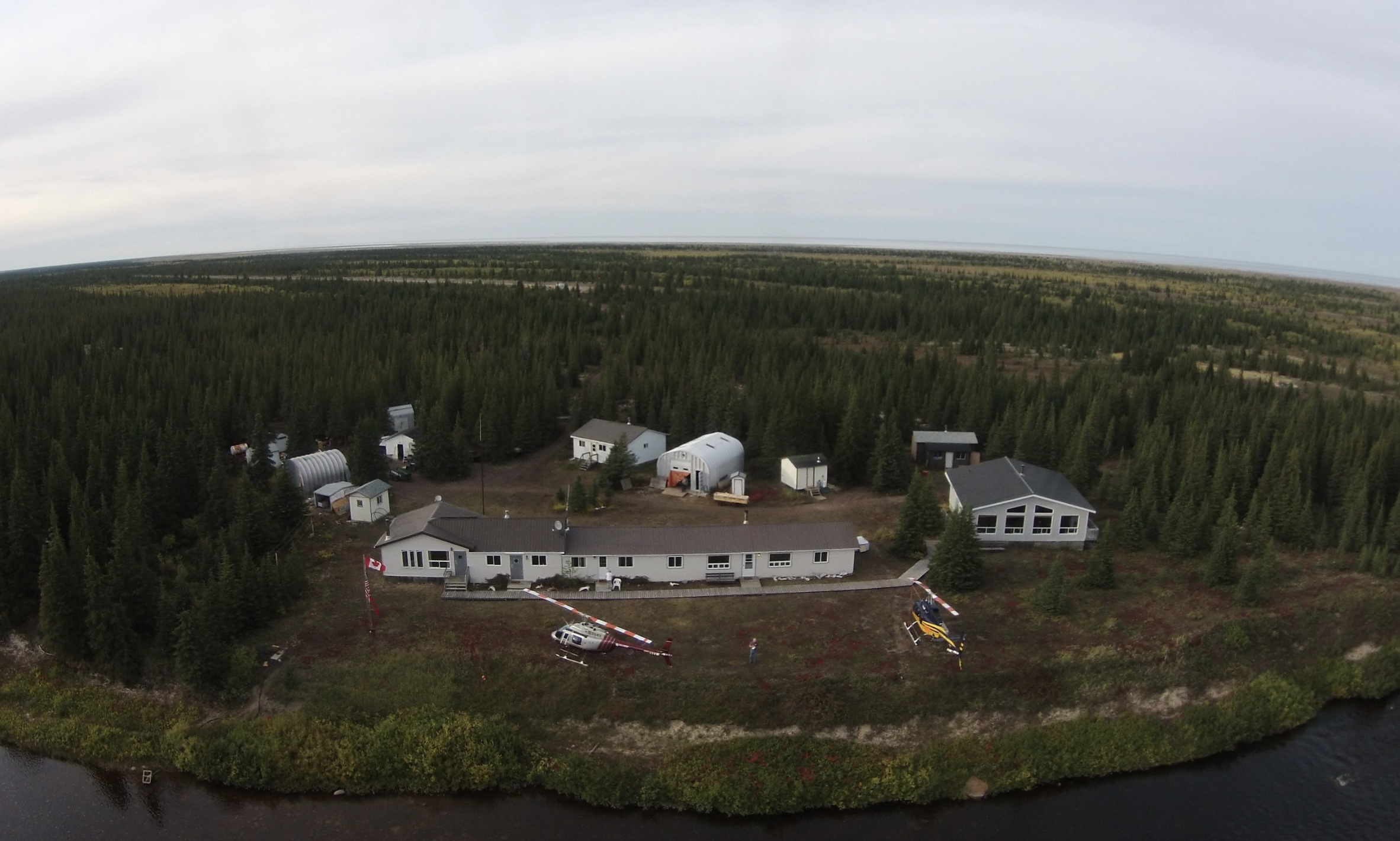 The lodge is a historic gem, formerly a Hudson Bay Company fur warehouse, fully renovated and expanded. Cabins are roomy, comfortable, and warm, providing a welcoming retreat after long days in the field.