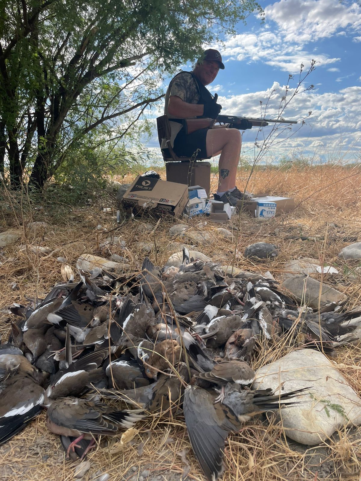 Hunts take place in carefully scouted prime locations, targeting white-winged doves, mourning doves, and Eurasian collared doves for fast-paced, exciting shooting.