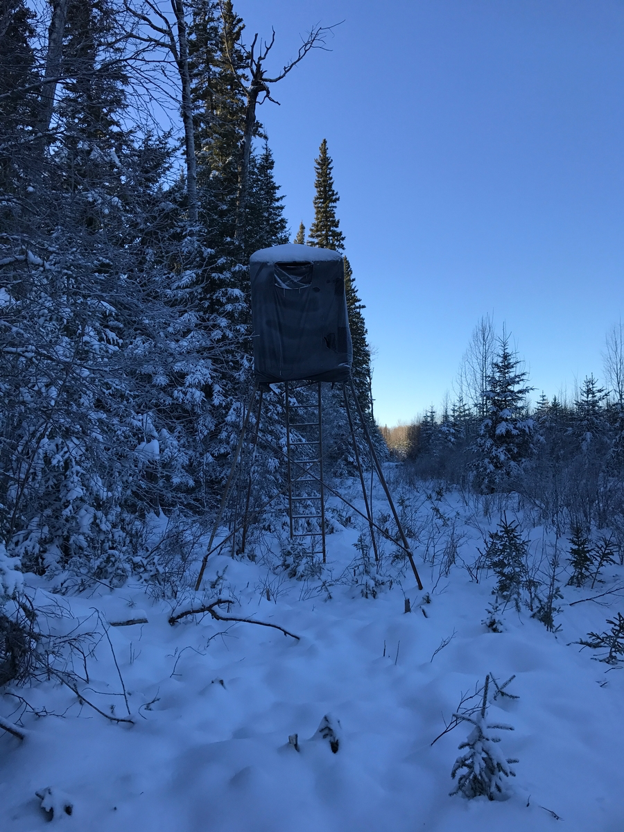 November rifle hunts are conducted from elevated or heated ground blinds along cut lines, cutovers, feeding areas, or travel corridors between feeding and bedding zones. Action can happen fast, so be ready for the shot.